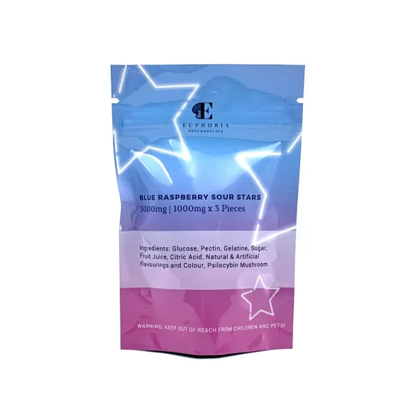 Shoot for the stars with these Euphoria Psychedelics Blue Raspberry Sour Stars! They will take you to a place like no other!