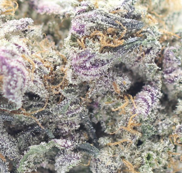 Granddaddy Purple is an indica marijuana strain that goes by many different names, including “Grand Daddy Purp,” “Granddaddy Purps,” “GDP,” and “Grandaddy Purple Kush.” Popularized in 2003 by Ken Estes, Granddaddy Purple (or GDP) is a famous indica cross of Mendo Purps, Skunk, and Afghanistan. This California staple inherits a complex grape and berry aroma from its Mendo Purps and Afghanistan parent, while Skunk passes on its oversized, compact bud structure. GDP flowers bloom in shades of deep purple, a contrasting backdrop for its snow-like dusting of white crystal resin. Its potent effects are clearly detectable in both mind and body, delivering a fusion of cerebral euphoria and physical relaxation.
