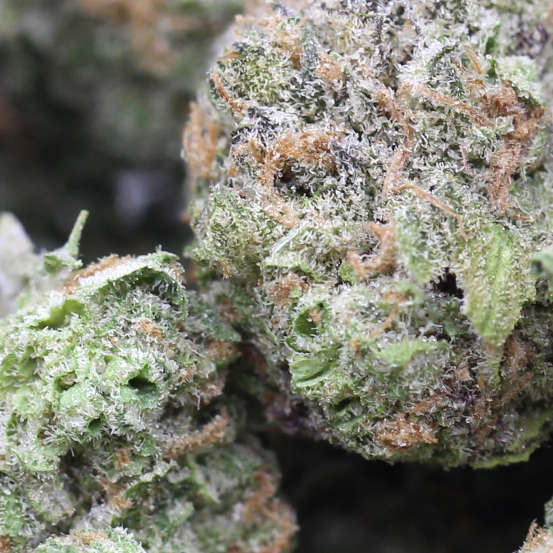 Slurricane is a slightly indica dominant hybrid strain (60% indica/40% sativa) created through a potent cross of the delicious Do-Si-Dos X Purple Punch strains. If you’re an indica lover who appreciates a super flavorful toke and a potent punch of effects, look no further – Slurricane will totally have you dazed with its delicious combination. This bud packs a super sweet fruity berry flavor accented by spicy tropical fruits and earth upon exhale. The aroma takes a pungent turn, with a spicy earthy overtone that’s accented by herbs and berries. The Slurricane high settles in a few minutes after your first delicious exhale, creeping up on the back of your head with tingly effects before suddenly taking hold. You’ll feel a soaring euphoria grow and grow, filling you with an expansive happiness that pushes out any negative thoughts. A potent body high comes next, lulling you into a completely couch-locked state that has you totally immovable for hours and hours on end. Thanks to these effects and its super potent 20-28% average THC level, Slurricane is the perfect choice for treating patients suffering from migraines or headaches chronic pain, cramps or muscle spasms and chronic fatigue. This bud has fluffy grape-shaped oversized dark olive green nugs with rich purple undertones, thin amber hairs and a coating of purple-tinted tiny white crystal trichomes.